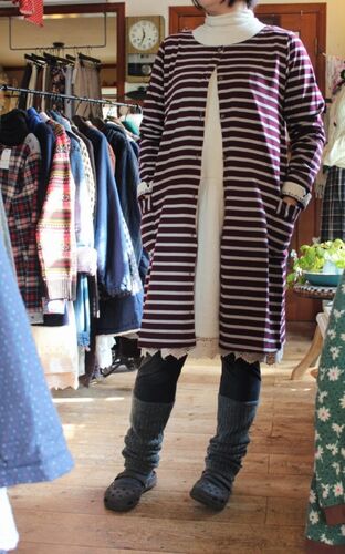 この2色のボーダーワンピ、すぐれものです。 お値段もびっくり!ポケットがサイドに付いているので 前開きで着てもいいし・・・ 後ろ開きに着てもいい。 インナーに着ているタートルワンピも便利であったかくて大人気。 白は完売しましたがブラウンの濃淡2色…