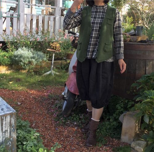 あゆです! 今日のファッションチェックから!まずはゆきみちゃん。 ニットのベスト。コンパクトな前開きタイプ。 かぼちゃパンツとコーディネート! サイドもかわいい☆ あら、だれかが遊んだ跡ね(●^o^●) 私は今日はカジュアルに。 インコルジェのブーツ…
