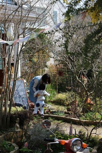 今日はミモザ祭り ! お庭に雑貨を準備中! 釣さん、はるちゃんもきたよ〜! 忙しくても朝のコーヒーは忘れずに! 今日はそうたもお休みなのでややこしいことになること間違いなし! はっちゃん今日はおしゃれ! ザッパコの手作りアドバイザーとしてバッチリ…