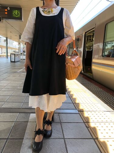 ゆきみのファッションチェック〜! 駅のホームにて! 最近のお気に入りはザッパワンピの黒!ストレッチが効いて、綺麗めに着れるから、いいんですって〜 この色はもうすぐ完売してしまいますが、追加で作ろうかな〜!と考え中! で、インナーに着ている袖が…
