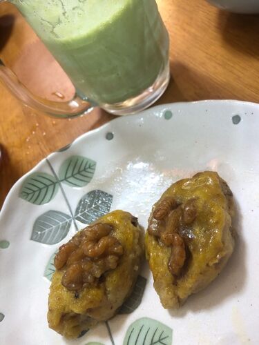 今朝の朝食のお供は、スイートポテト 最近お芋を大量に買って、オーブンに入れて50分焼く、簡単焼き芋にハマっています! 作りすぎたときは、くるみを入れてスイートポテトに変身! 今朝も使い方を間違ってますがオマルでご機嫌に遊んでいます^^ にーち…