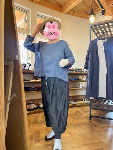 つりです。 ルシエルのパンツにコイルナインのギャザープルオーバーを合わせていただきさらにカンカン帽でバッチリ全身コーデステキー ライトブルーのサボまで 今日のような暑い日にはリネンでサラッとがいいですね ♪ このプルオーバー、毎日人気です ¥5,900+税 …