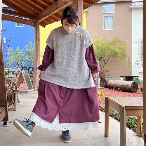 つりです。 ほわっほわなニットが届いたので、りんちゃんに着てみてもらいました✨ ワンピースの上からすぽんと。 ブークレニットワイドベスト¥4,290 サイドのスリットもかわいい! ゆったりしてます。 びよーん(コラコラ)。 ピンク、ベージュ、ブラウン、グ…