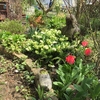 2015-04-21 やっと雨があがって。 やっといいお天気に。 昨日は石のように動かずにいたのでさすがに今日は じっとしていられずお昼から庭仕事。 この時期庭にいると元気になる気がします。 キャットミントとクリサンセマムマウイ。 リキュウバイ。 トリスティス。 フロックス。 姫リンゴ。 五色カエデの新芽。季節によって色が変わっていきます。 シラー。 イベリスとシルバーの葉のサントリナ。 レンガで造った花壇が見えないくらい流れ落ちるように広がっているタイム ピンクの可愛い花がもうすぐ満開に・・・ オダマキ。何年も前に実家から持ってきたもの。 草取りをしているとずっとそばにいるみゅうちゃん。 ゆきちゃんはみゅうちゃんよりもぽっちゃりしてるでしょう。