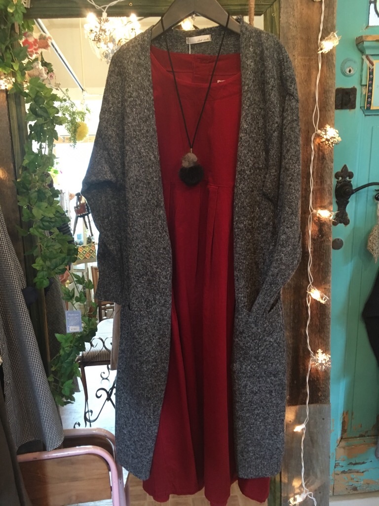 あったかインナーに四方美人ワンピの上に羽織ると素敵。