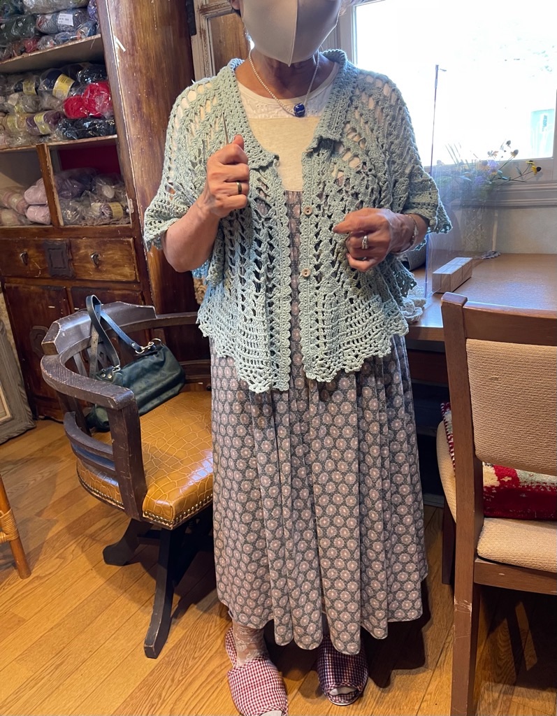 コットンリネンのベストはやっぱりほっそり素敵に見えますね。