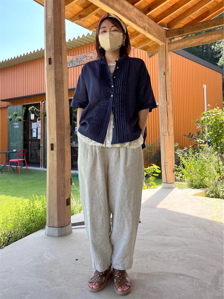 えりちゃんもリネンのプルオーバーにリネンのパンツ。